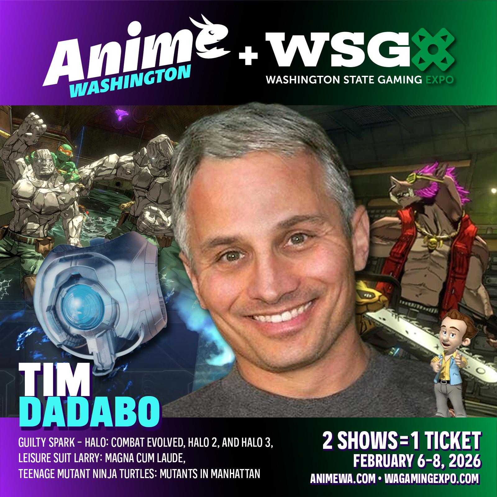 All Guests that are promoted are under contract to appear on the days listed. If the Guest has an unforeseen conflict personally or professionally and can not make the event, Anime Washington would post a notice on the website and social media immediately. No refunds will be given for admission tickets due to a Guest’s cancellation.